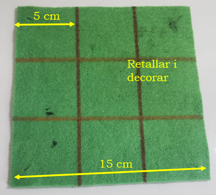 1. Agafa el feltre i un regle i marca amb l'ajuda d'un llapis un quadrat de 15x15.